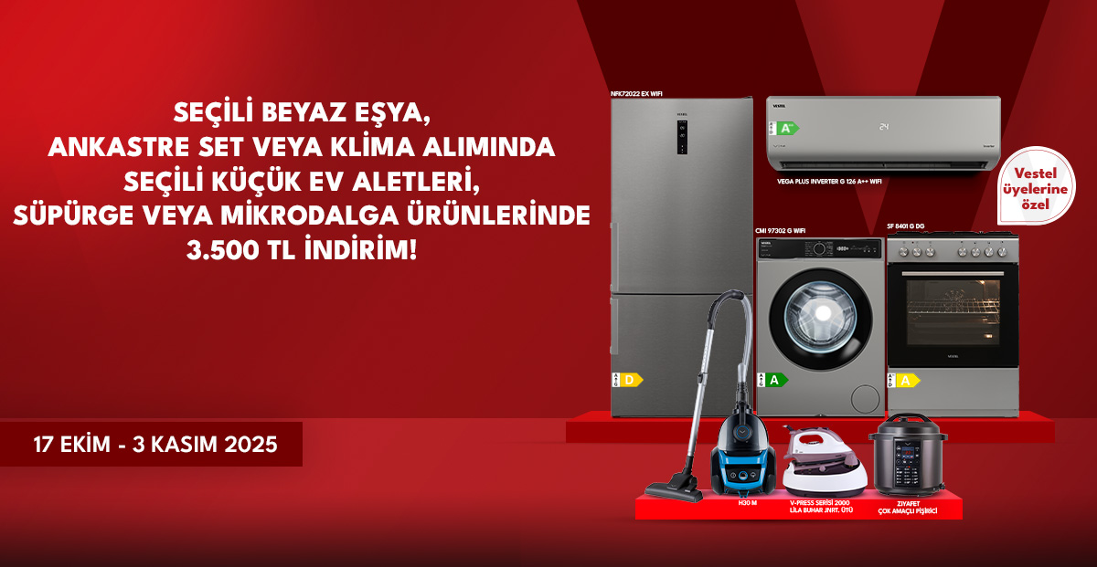 • Kampanya 17 Ekim - 3 Kasım 2025 tarihleri arasında Vestel yetkili satıcıları, Vestel mağazaları ya da vestel.com.tr’den alınan seçili ürünlerde geçerlidir.