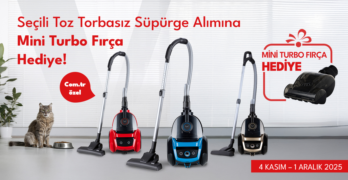 Toz Torbasız Süpürge Alımına Mini Turbo Fırça Hediye!