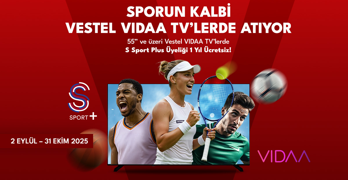 55” ve üzeri Vestel Vidaa TV’lerde S Sport Plus Üyeliği 1 Yıl Ücretsiz!