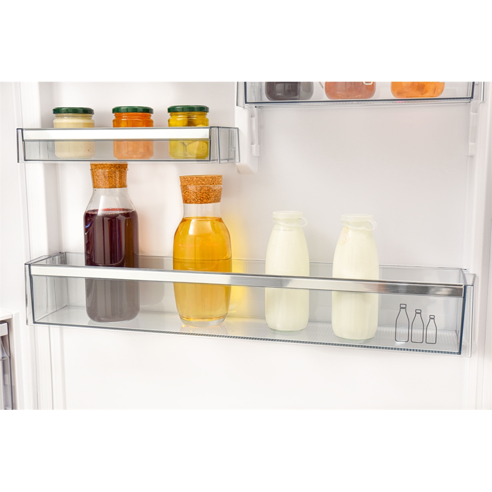 Kırılmaya dayanıklı özel cam raflar sayesinde, büyük ve ağır yiyeceklerinizi gönül rahatlığıyla buzdolabınızda saklayabilirsiniz. Cam raf tasarımları temperlidir.