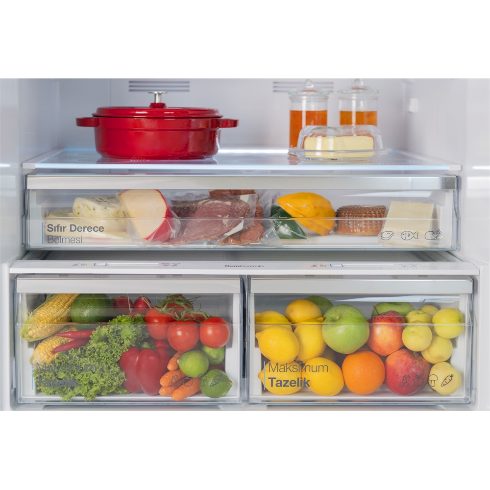 Soğutucu içerisindeki bağımsız hava teknolojisi sayesinde yiyeceklerinizin taze hava ile teması artar, yiyecekler daha uzun süre taze kalır.
