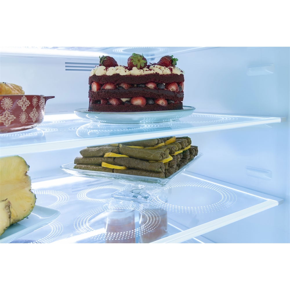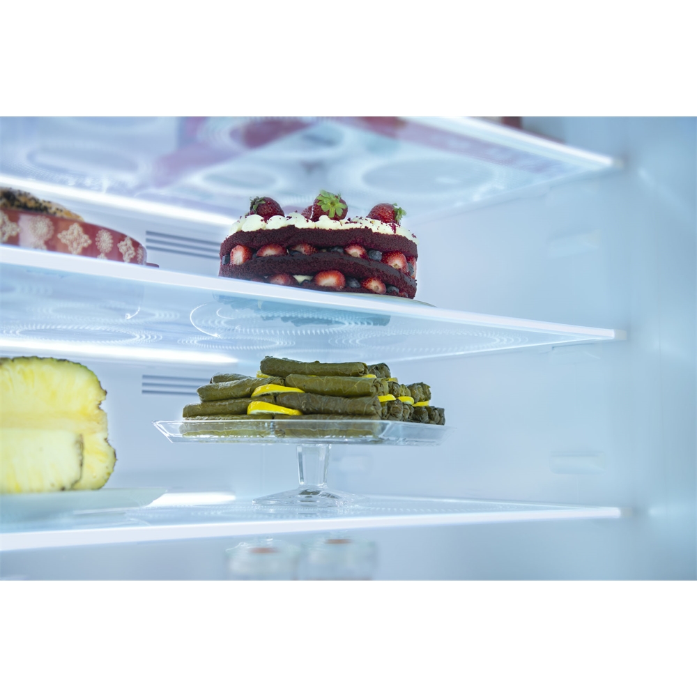 Kırılmaya dayanıklı özel cam raflar sayesinde, büyük ve ağır yiyeceklerinizi gönül rahatlığıyla buzdolabınızda saklayabilirsiniz. Cam raf tasarımları temperlidir.