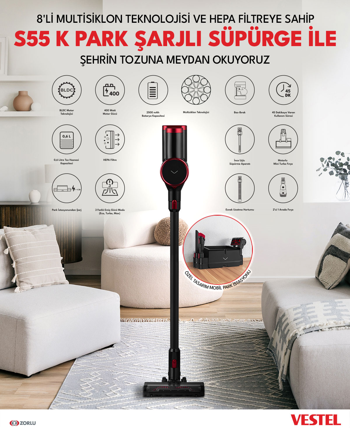 VESTEL S55 K PARK Şarjlı Süpürge