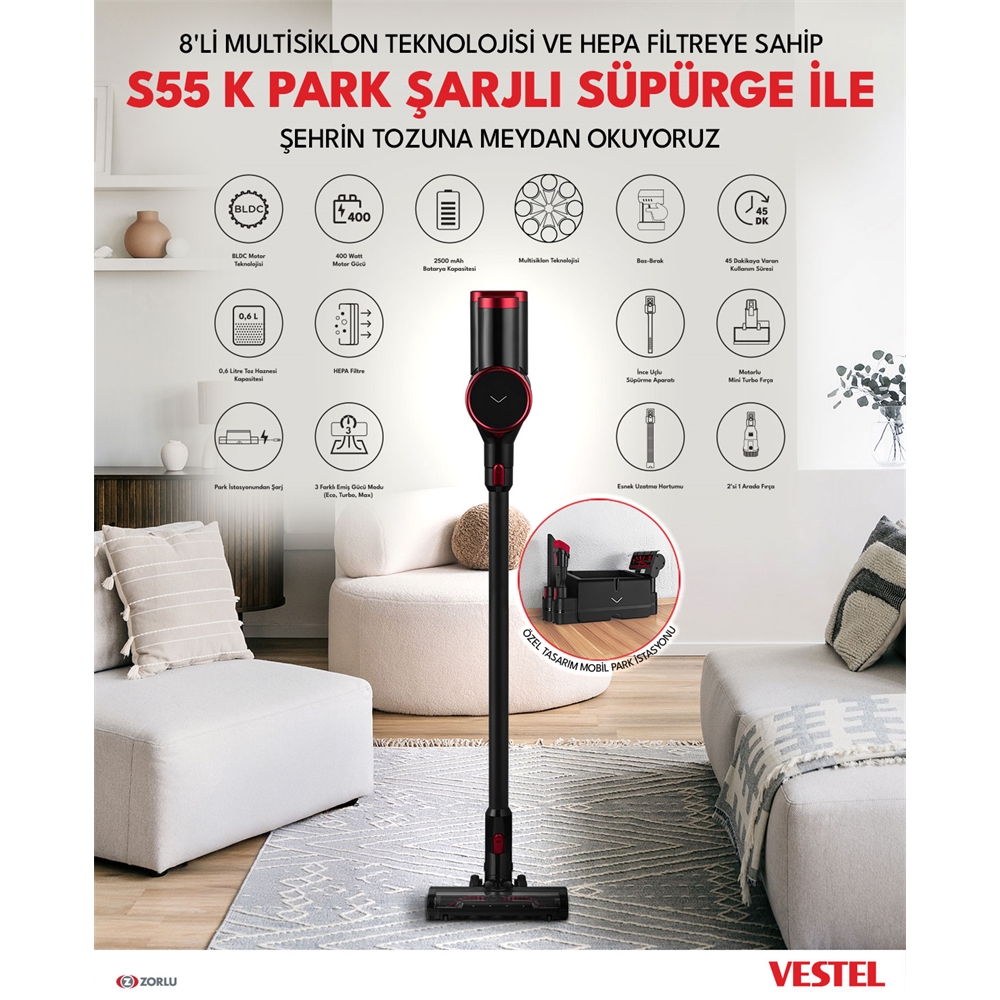 VESTEL S55 K Şarjlı Süpürge