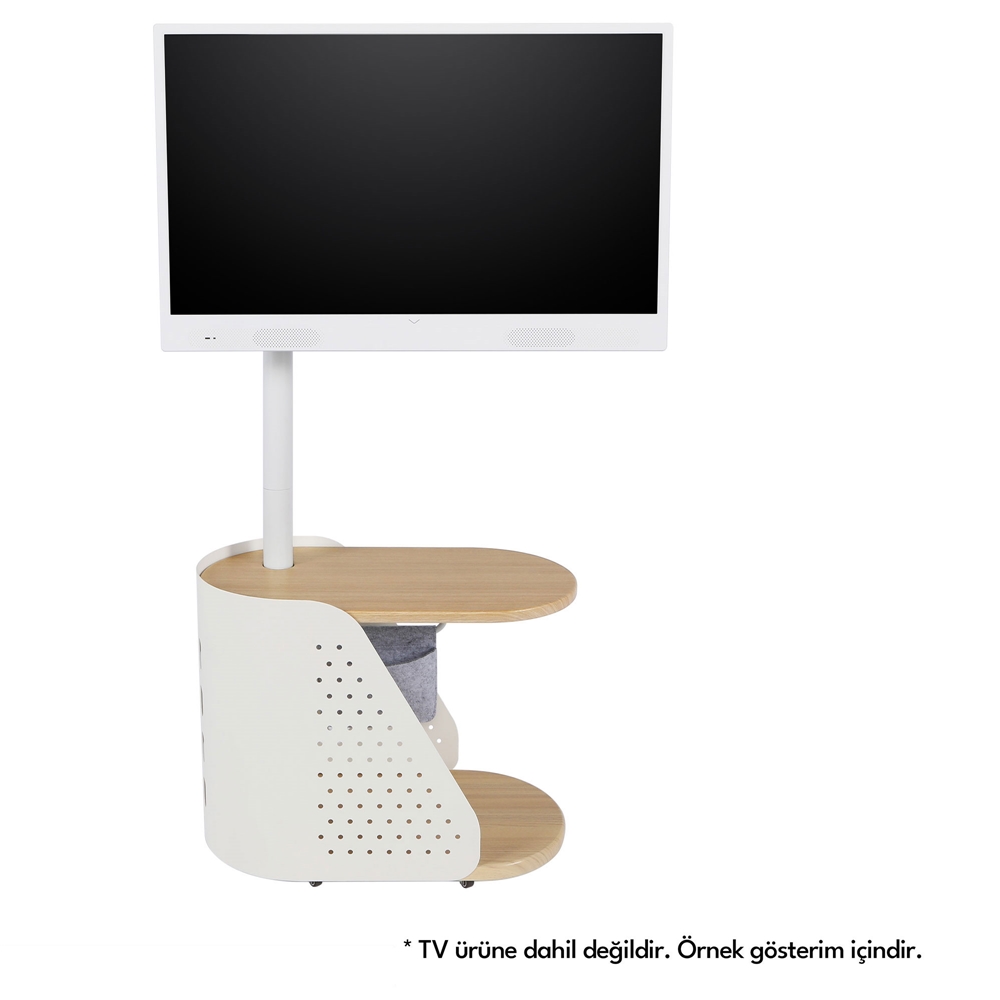 Vestel Flex Hareketli TV Standı, çok yönlü ve şık tasarımıyla sizlere pratik çözümler sunarken aksesuar alanlarıyla ihtiyaçlarınıza göre özelleştirilebilir. Alt bölümde yer alan geniş rafları ve kumaş sepet, düzenli bir kullanım alanı sağlarken, entegre kablo yönetimi sayesinde kablo karmaşası önlenir. 6 adet gizli tekerlek sayesinde kolayca taşınabilir ve farklı alanlara rahatça konumlandırılabilir. Ayrıca televizyonunuza yukarı ve aşağı %10 eğim verme imkânı sunarak, izleme açınızı dilediğiniz şekilde ayarlamanıza olanak tanır. Vestel Flex Hareketli TV Standı ile televizyonunuzu nerede isterseniz orada izleyin. İster mutfağınızda, ister salonunuzda, ister bahçenizde. Siz evin neresindeyseniz televizyonunuz da orada.